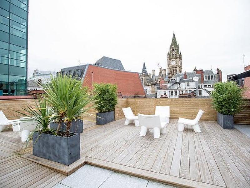 Flexible terms on a range of private office spaces with reception, meeting rooms and roof terrace (great for events)